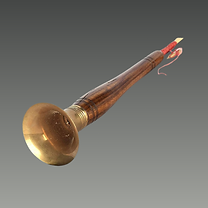 The sarangi is a traditional musical instrument from India, similar to a small, handheld organ. It has a series of small pipes..